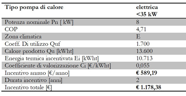 Esempio di incentivo con pompa di calore